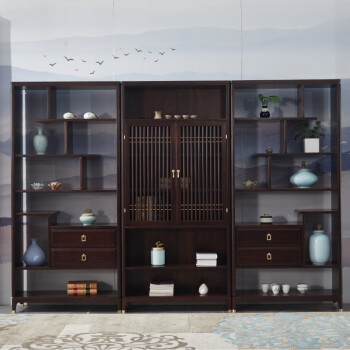 冠唐軒新中国式烏金木全裸書棚四門六戸戸の丸木門書棚事務室別荘家装备物棚二つの書棚を注文して色のサイズをオーダーメードして注文金を注文します。